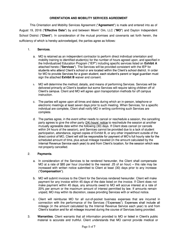 Get the free of 7 ORIENTATION AND MOBILITY SERVICES AGREEMENT ...