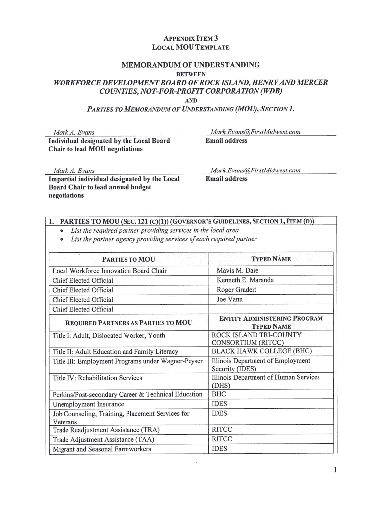 WORKFORCE DEVELOPMENT BOARD OF ROCK ISLAND, HENRY AND MERCER