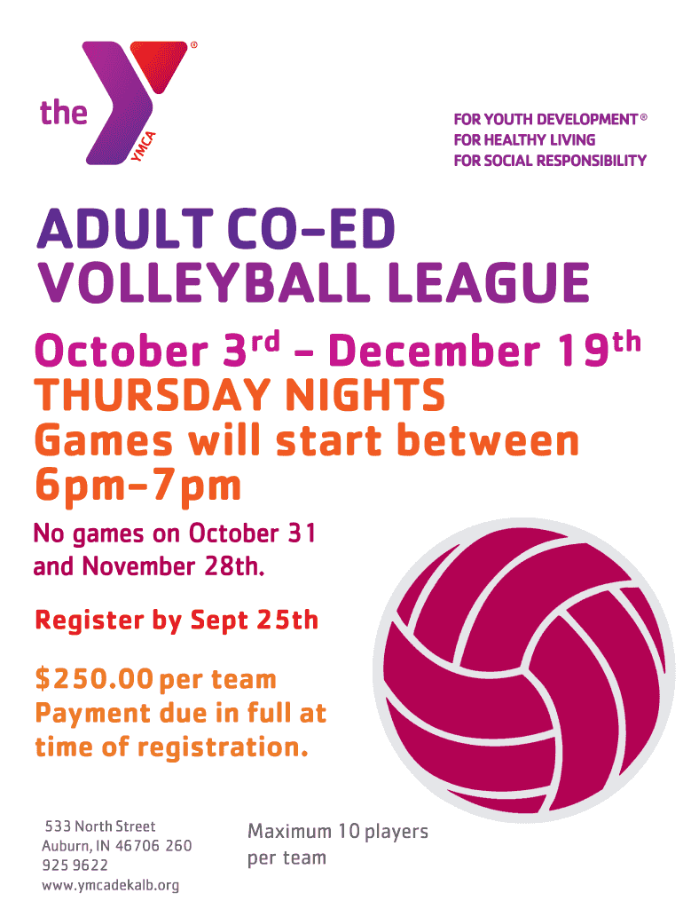 Fill out your adult co-ed volleyball league online with pdfFiller!