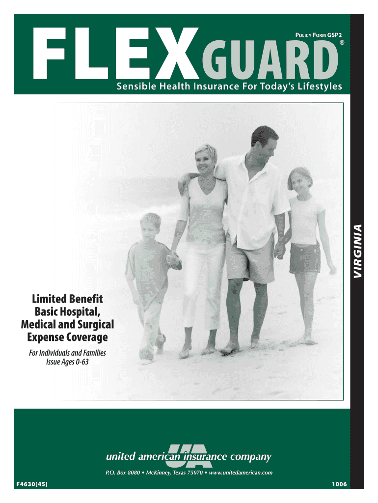 FLEXGUARDPOLICY FORM GSP2VIRGINIASensible Health Insurance For Today's LifestylesLimited Benefit Basic Hospital, Medical and Surgical Expense Coverage For Individuals and Families Issue Ages 063P.