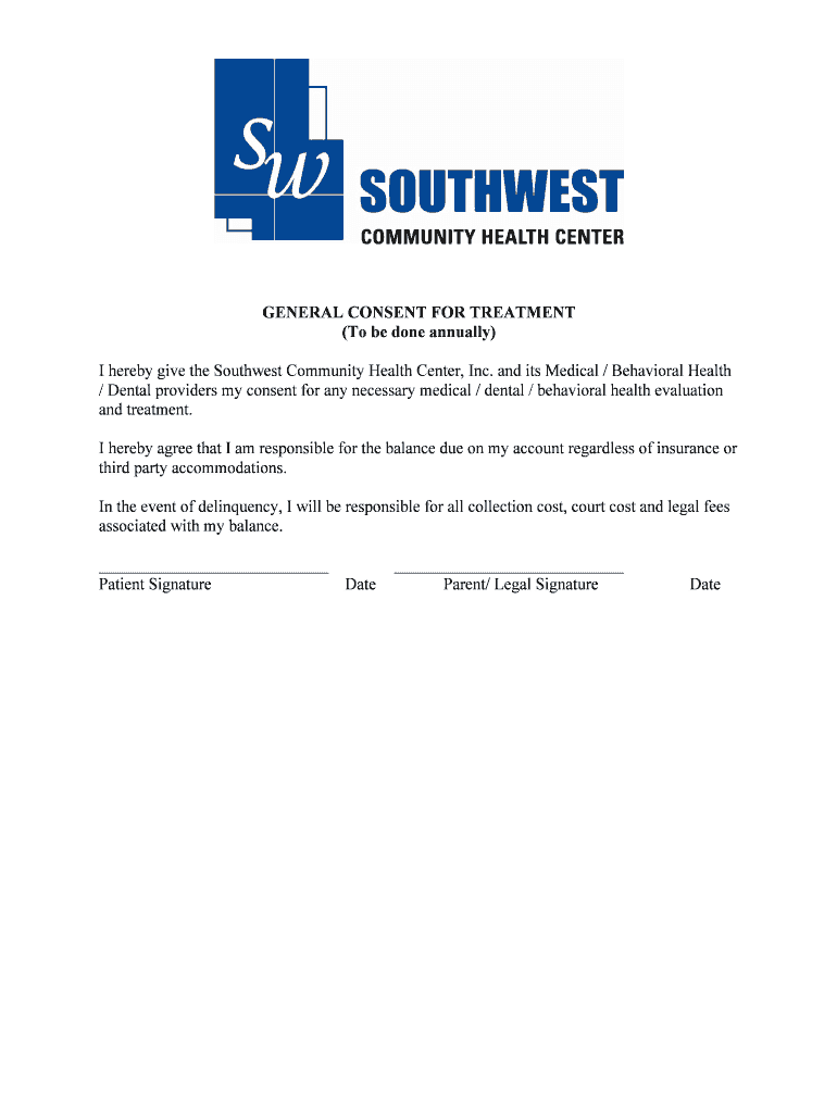 I hereby give the Southwest Community Health Center, Inc. and its Medical / Behavioral Health