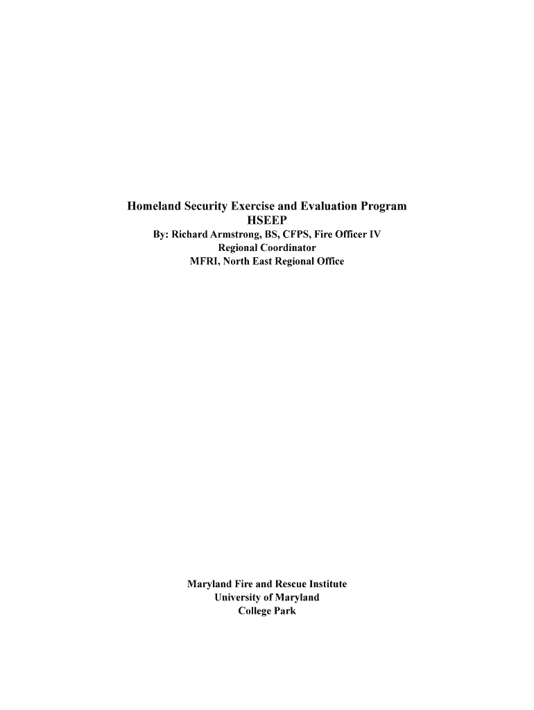 Homeland Security Exercise and Evaluation Program SEEP By: Richard Armstrong, BS, CAPS, Fire Officer IV Regional Coordinator MRI, North East Regional Office Maryland Fire and Rescue Institute University