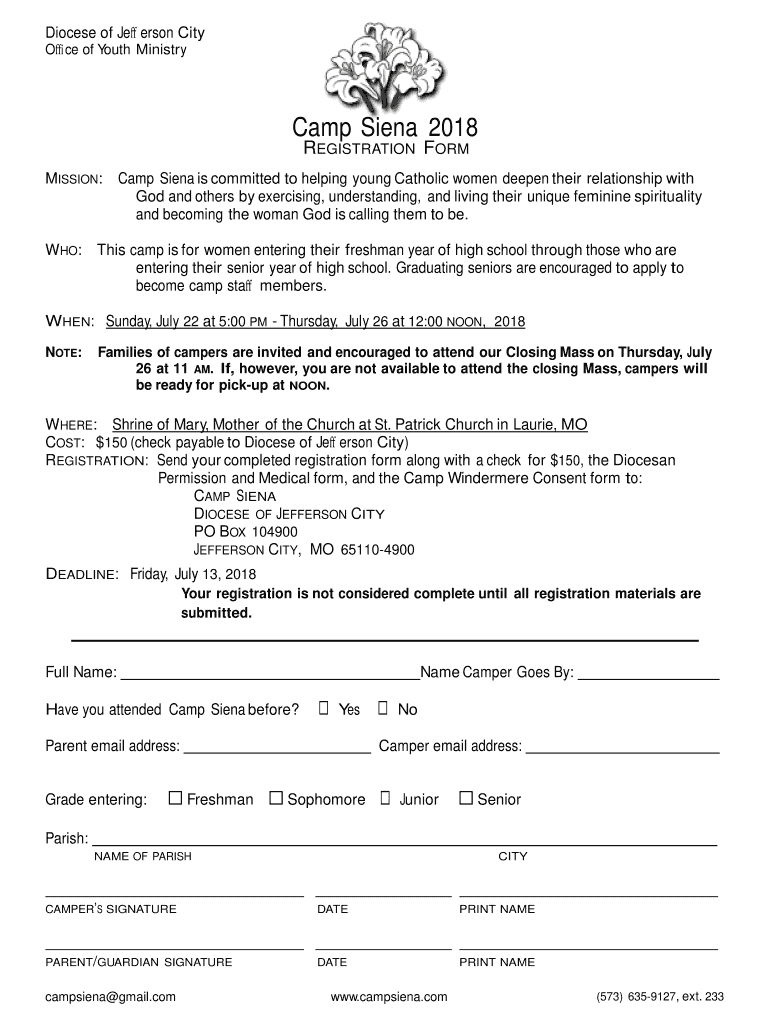 REGISTRATION COMMISSION:WHO:Camp Saint is committed to helping young Catholic women deepen their relationship with