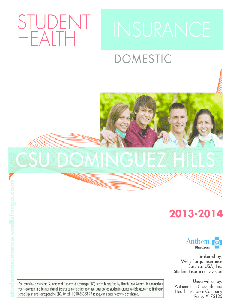 STUDENT HEALTHINSURANCE DOMESTICstudentinsurance. Wells Fargo.com CSU DOMINGUEZ HILLS 20132014Brokered by: Wells Fargo Insurance Services USA, Inc. Student Insurance Division You can view a standard