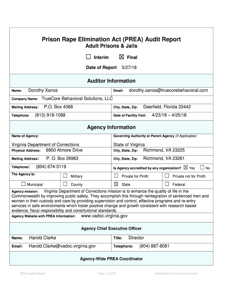 Get the free Prison Rape Elimination Act (PREA) Audit Report - Virginia ... - vadoc virginia