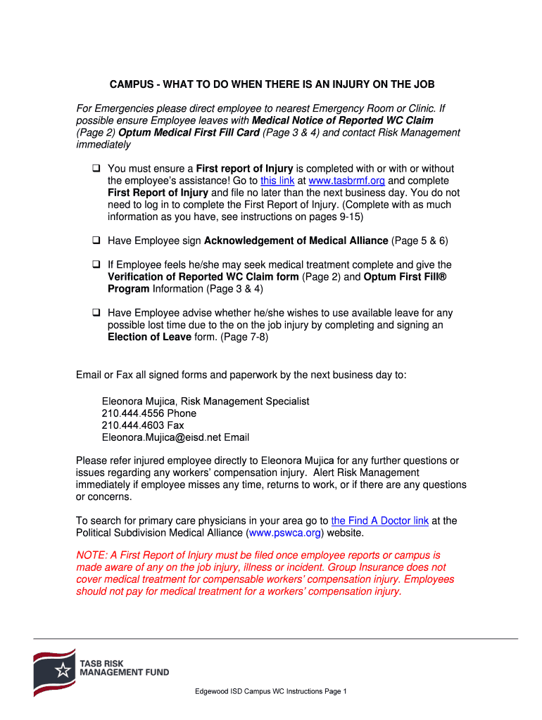 Get the free CAMPUS - WHAT TO DO WHEN THERE IS AN INJURY ON THE JOB