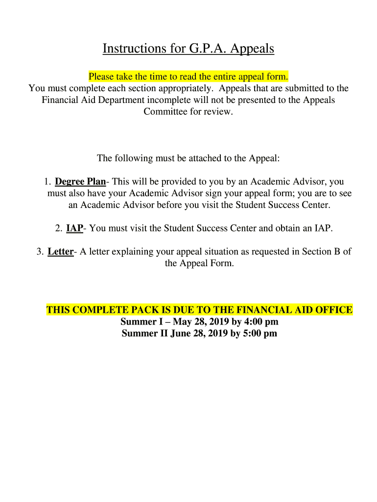 Instructions for G.P.A. Appeals