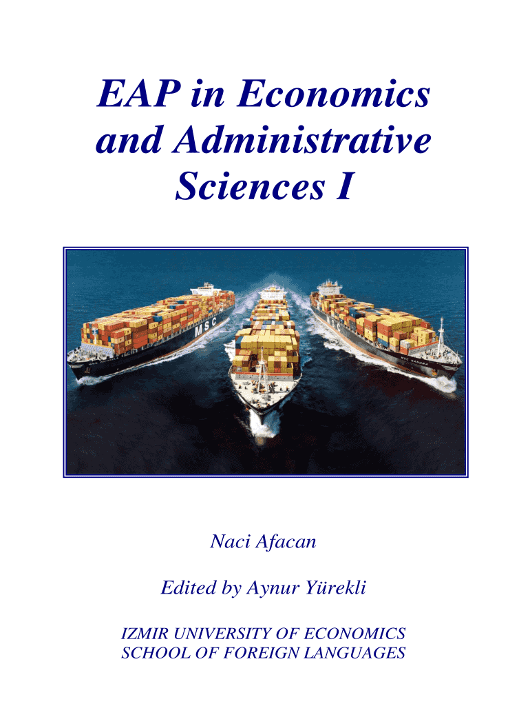 EAP in Economics and Administrative Sciences I Nazi African Edited by Your Real IZMIR UNIVERSITY OF ECONOMICS SCHOOL OF FOREIGN LANGUAGES ACKNOWLEDGEMENTS We would like to express our thanks to the