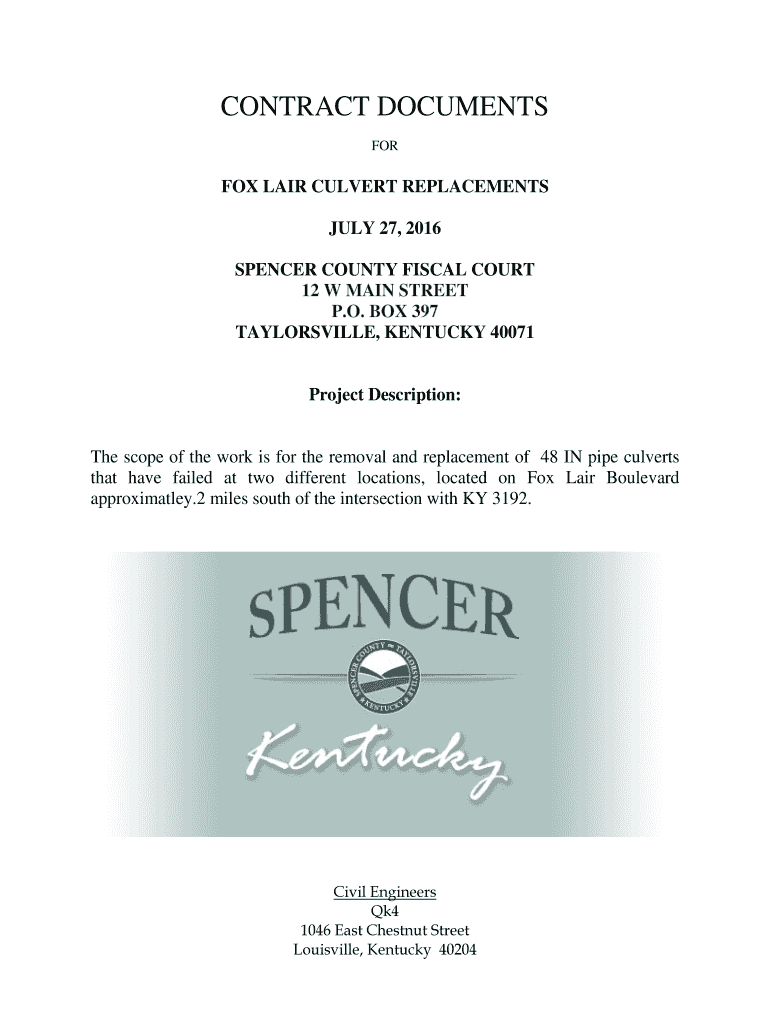 TAYLORSVILLE, KENTUCKY 40071Project Description:The scope of the work is