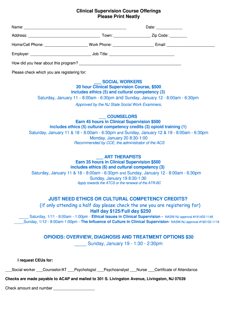 Get the free Clinical Supervision Course Offerings Please Print Neatly ...