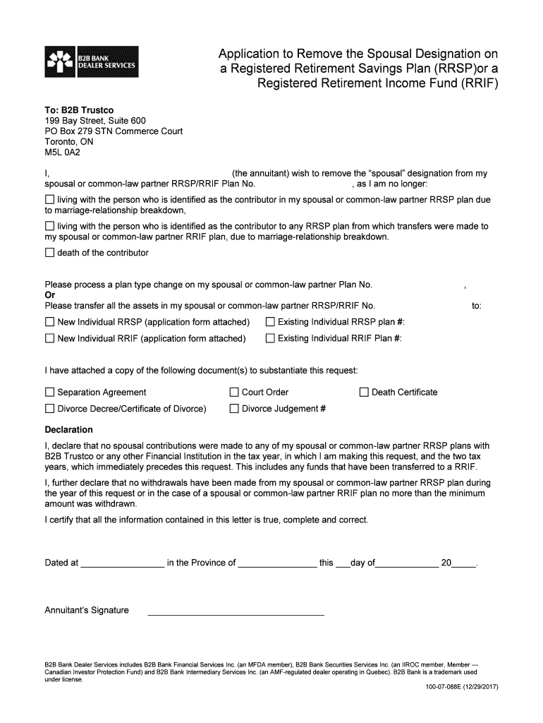 Get the free Application to Remove the Spousal Designation ... - B2B Bank