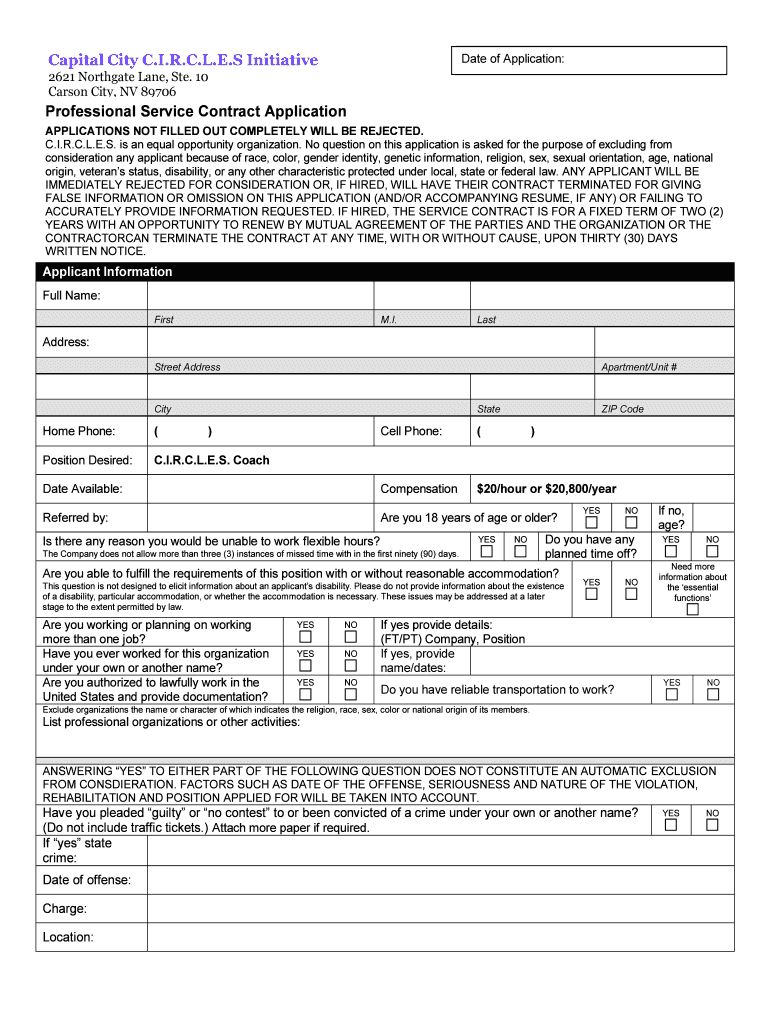 Carson City, NV 89706Professional Service Contract Application
