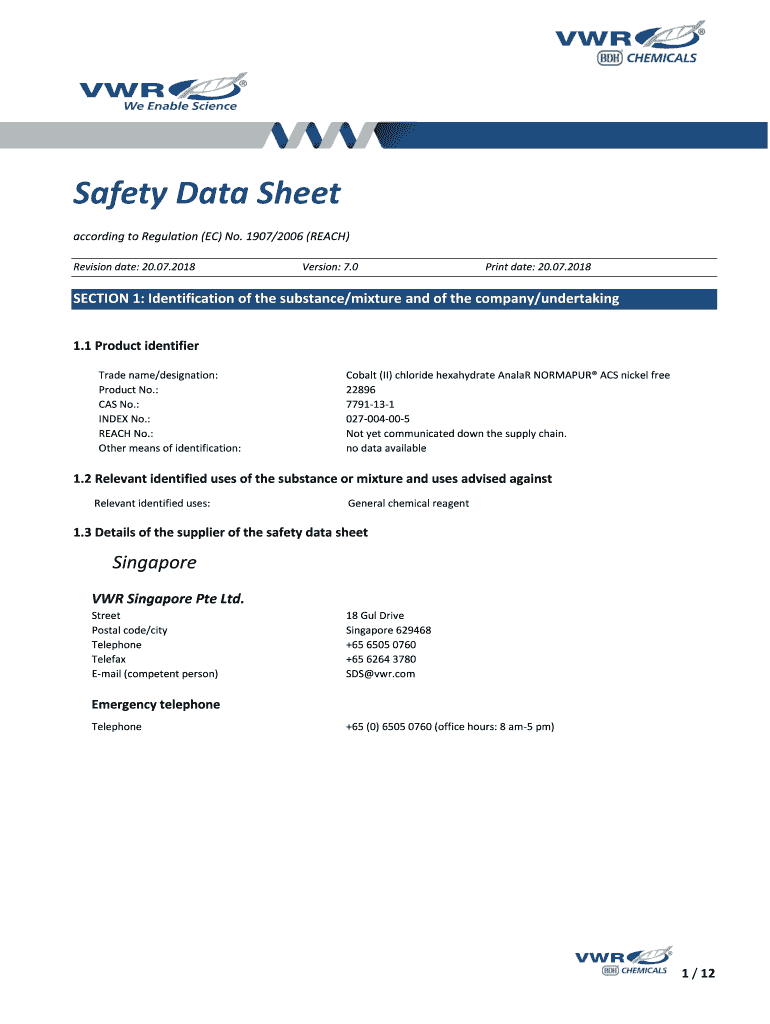 Revision date: 20.07.2018Version: 7.0Print date: 20.07.2018SECTION 1: Identification of the substance/mixture and of the company/undertaking
