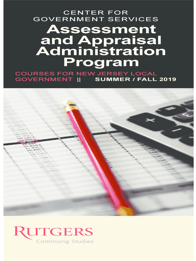CENTER FOR GOVERNMENT SERVICESASSESSMENT AND APPRAISAL ADMINISTRATION PROGRAMAssessment and Appraisal Administration ProgramCOURSES FOR NEW JERSEY LOCAL GOVERNMENT SUMMER / FALL 2019ASSESSMENT AND