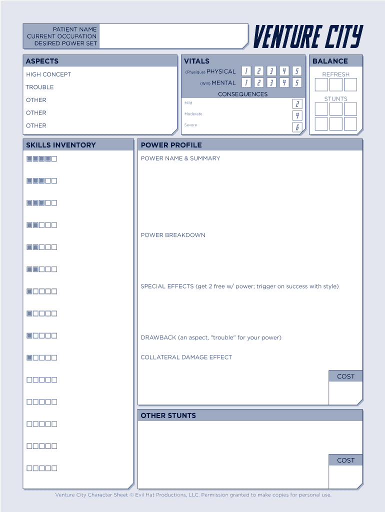Fill out your venture city character sheet online with pdfFiller!