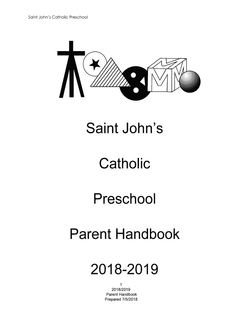 Prepared 7/5/2018Saint Johns Catholic Preschools handbook is intended to describe