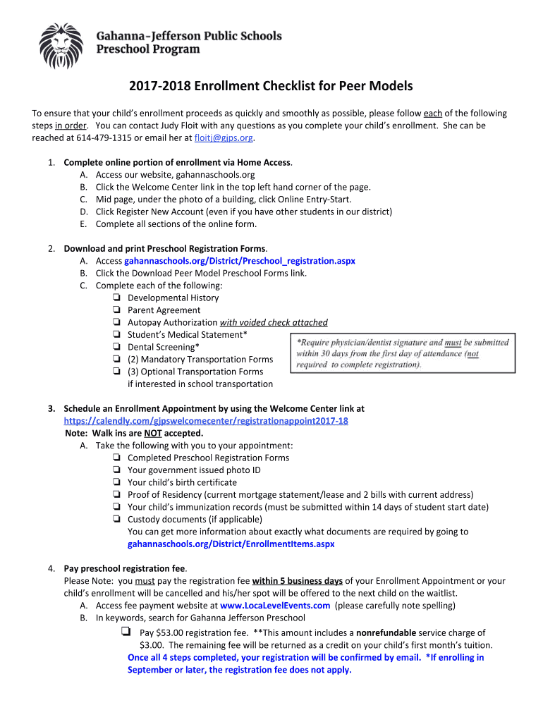 To ensure that your children enrollment proceeds as quickly and smoothly as possible, please follow each of the following