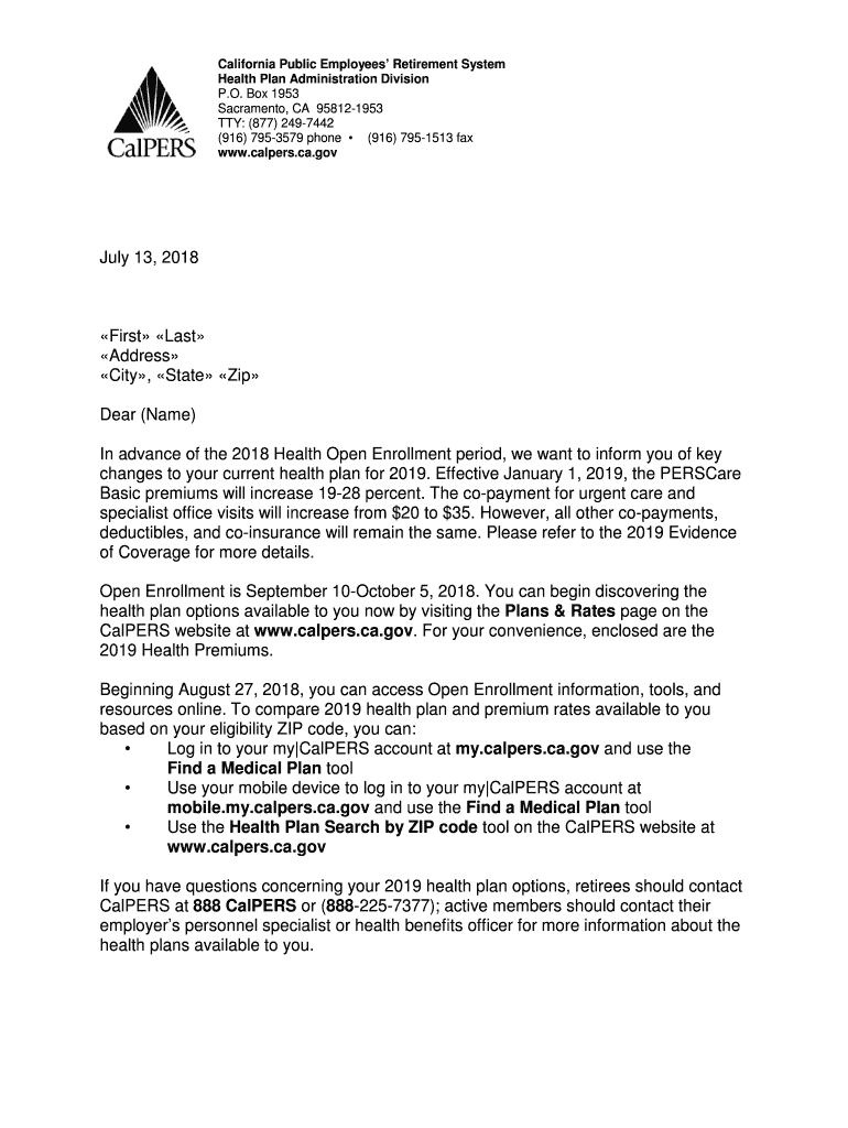 California Public Employees Retirement System Health Plan Administration Division P.O. Box 1953 Sacramento, CA 958121953 TTY: (877) 2497442 (916) 7953579 phone (916) 7951513 fax www.calpers.ca.govJuly