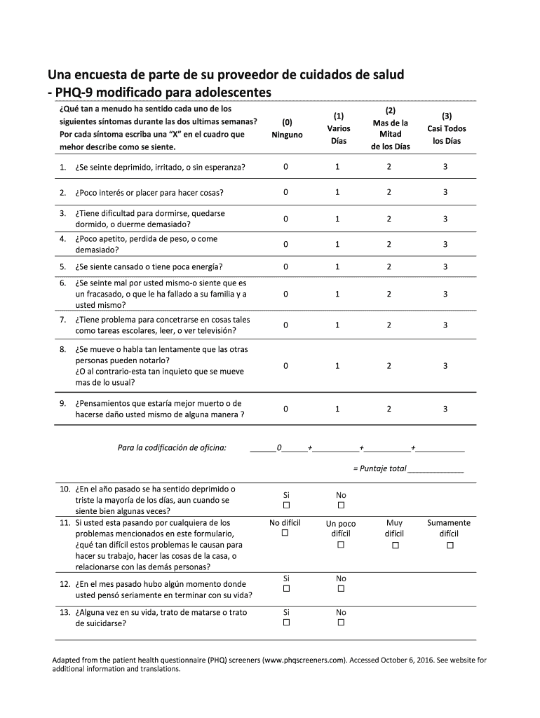 RNA ensues DE part de SU provender DE doodads DE salad PHQ9 modified para adolescents EU tan a menu do ha Santino CADA UNO de Los migraines stomas Durante leis dos ultimate demands? POR CADA stoma