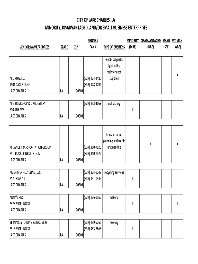 Get the free city of lake charles, la minority, disadvantaged, and/or small ...