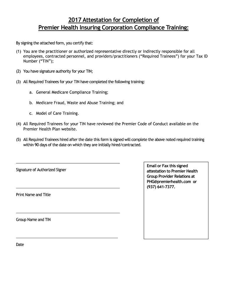 Premier Health Insuring Corporation Compliance Training: