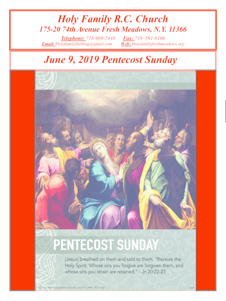 Holy Family R.C. Church17520 74th Avenue Fresh Meadows, N.Y. 11366 Telephone: 7189692448Email: Holyfamilyflushing Gmail. Colfax: 7185916166Web: Holyfamilyfreshmeadows.org June 9, 2019, Pentecost SundayHoly