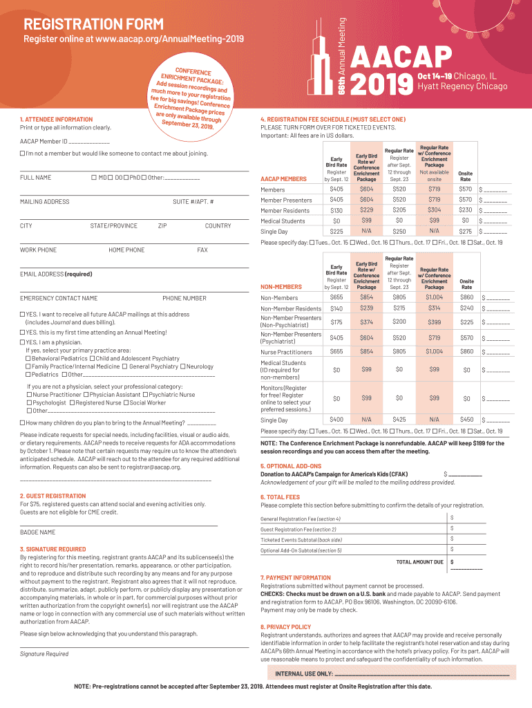 66th Annual MeetingREGISTRATION Preregister online at www.aacap.org/AnnualMeeting2019 CONFERENCE ENRICHMENT T PACKAGE: Add session recordings a much more to your resist d ration fee for big savings!