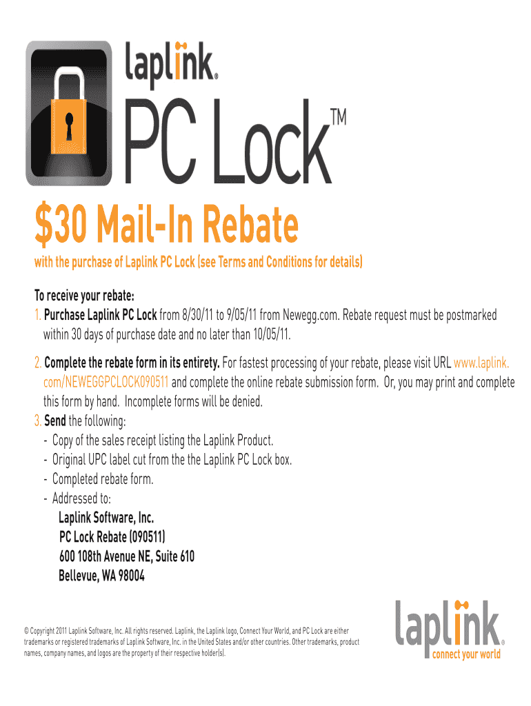 1. Purchase Lap link PC Lock from 8/30/11 to 9/05/11 from Newegg.com. Rebate