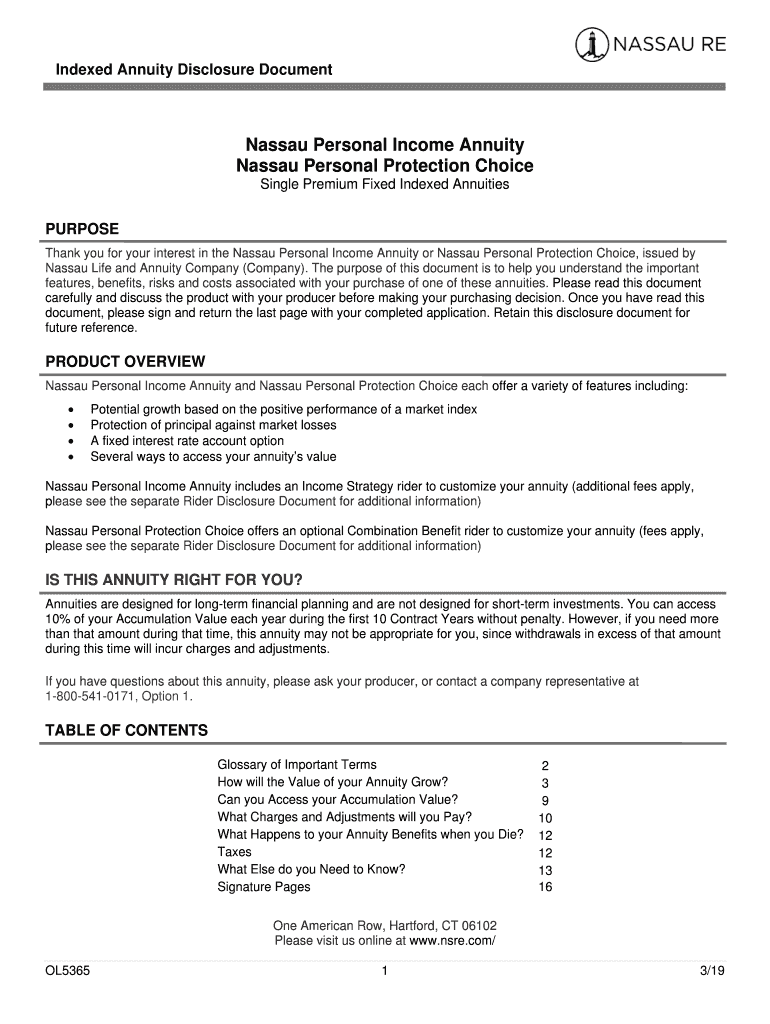 Indexed Annuity Disclosure Document Nassau Personal Income Annuity