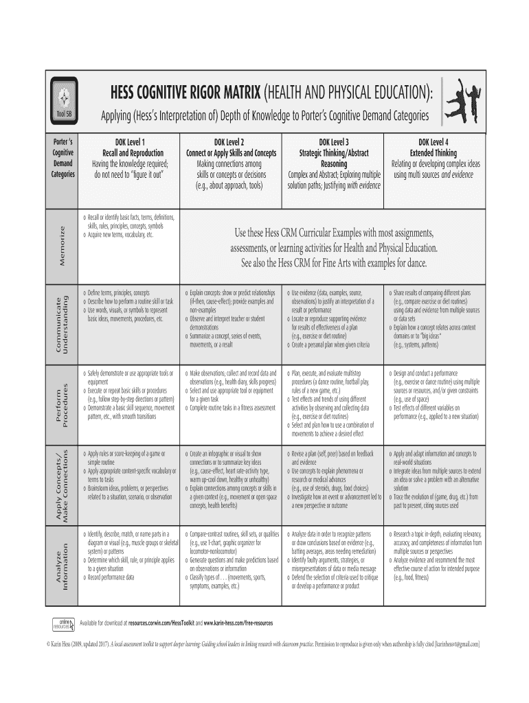 HESS COGNITIVE RIGOR MATRIX (HEALTH AND PHYSICAL EDUCATION):