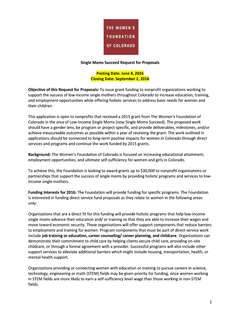 Single Moms Succeed request is a form submitted by single mothers seeking financial assistance or support for various programs aimed at helping them succeed.