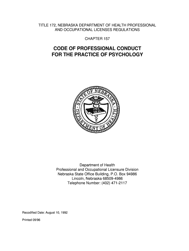 TITLE 172, NEBRASKA DEPARTMENT OF HEALTH PROFESSIONAL
