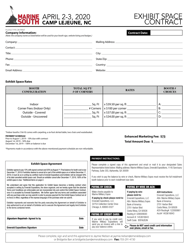 EXHIBIT SPACE CONTRACTAPRIL 23, 2020CAMP JEJUNE, NC PLEASE TYPE OR PRINTCompany Information:Contract Date:(Note: the company name as listed below will be used for your booth sign, website listing
