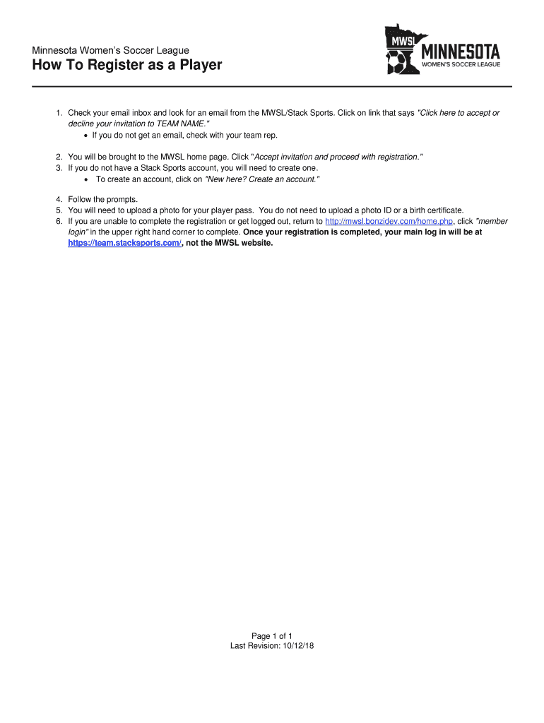 Minnesota Women's Soccer League To Register as a Player1. Check your email inbox and look for an email from the MW SL/Stack Sports. Click on link that says “Click here to accept or decline your