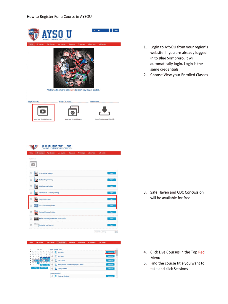 Get the free How to Register For a Course in AYSOU 3. Safe Haven and ...