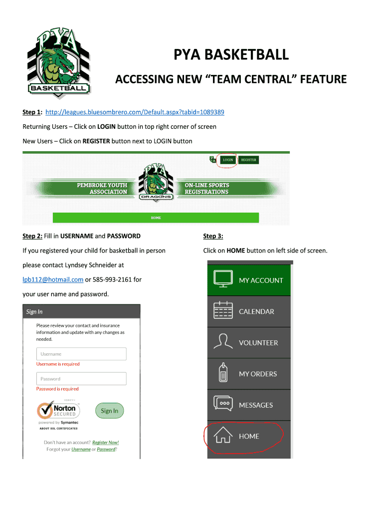 Get the free PYA BASKETBALL ACCESSING TEAM CENTRAL