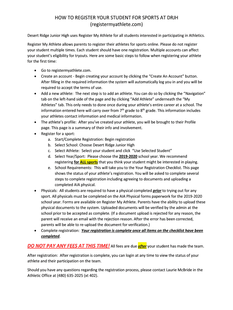 Desert Ridge Junior High uses Register My Athlete for all students interested in participating in Athletics.