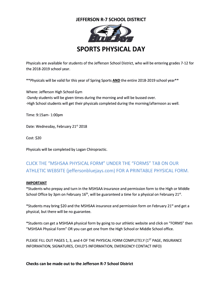 JEFFERSON R7 SCHOOL DISTRICTSPORTS PHYSICAL DAY
