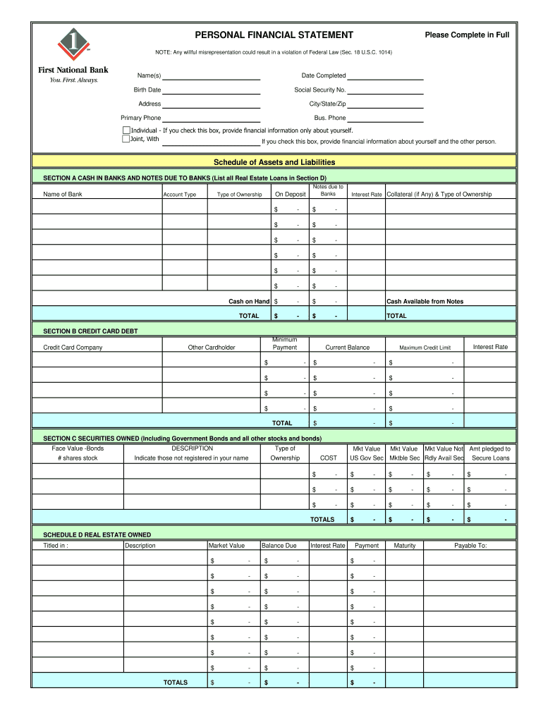 How to fill out personal financial statement please