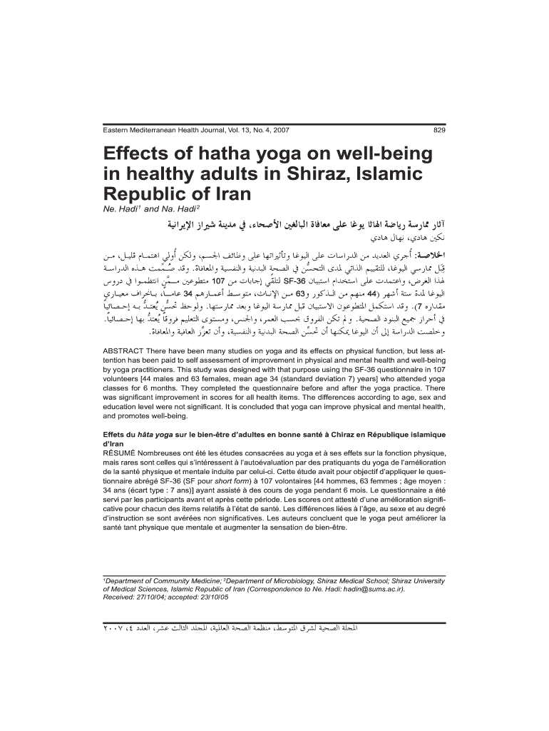 Get the free Effects of hatha yoga on wellbeing in healthy adults in Shiraz ...