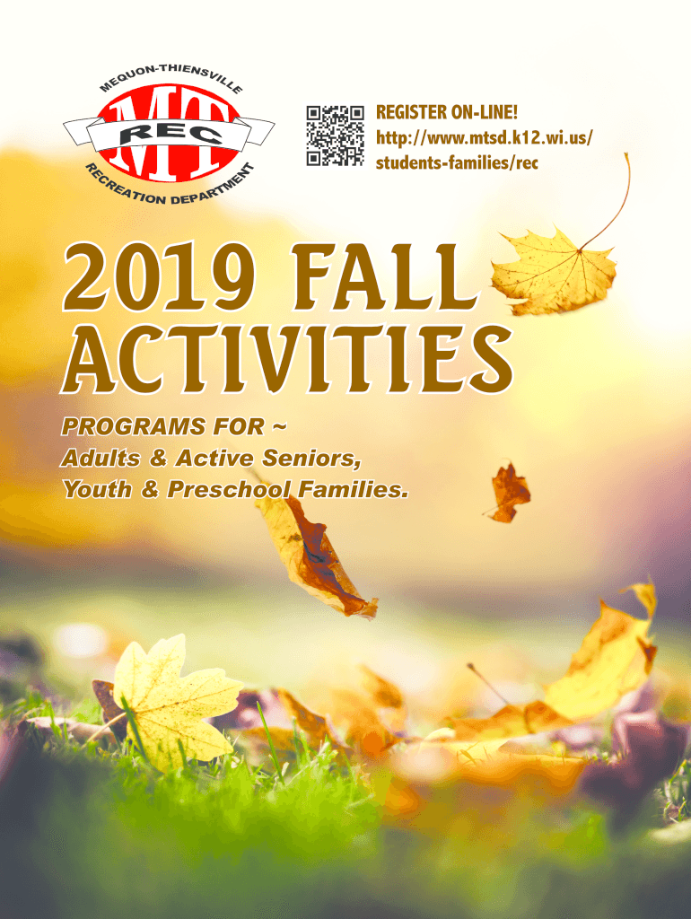 REGISTER ONLINE! http://www.mtsd.k12.wi.us/ students families/rec2019 FALL AC TIVITIESPROGRAMS FOR Adults & Active Seniors, Youth & Preschool Families. Directors Message Hello MequonThiensville Community