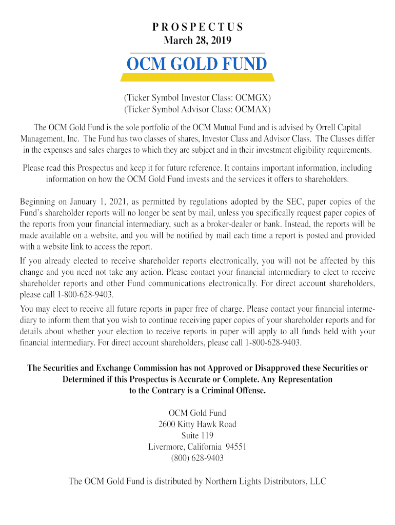 Edit ocm gold fund investor. Add and change text, add new objects, move pages, add watermarks and page numbers, and more. Then click Done when you're done editing and go to the Documents tab to merge or split the file. If you want to lock or unlock the file, click the lock or unlock button.