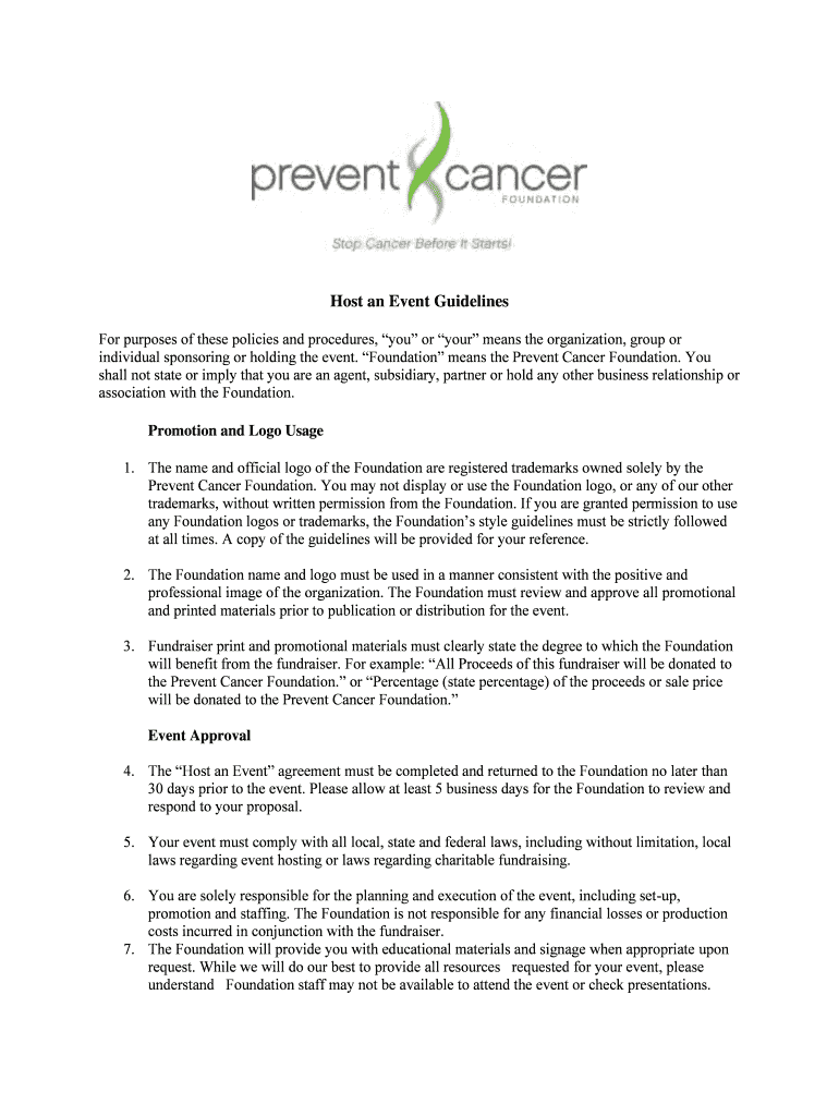 individual sponsoring or holding the event. Foundation means the Prevent Cancer