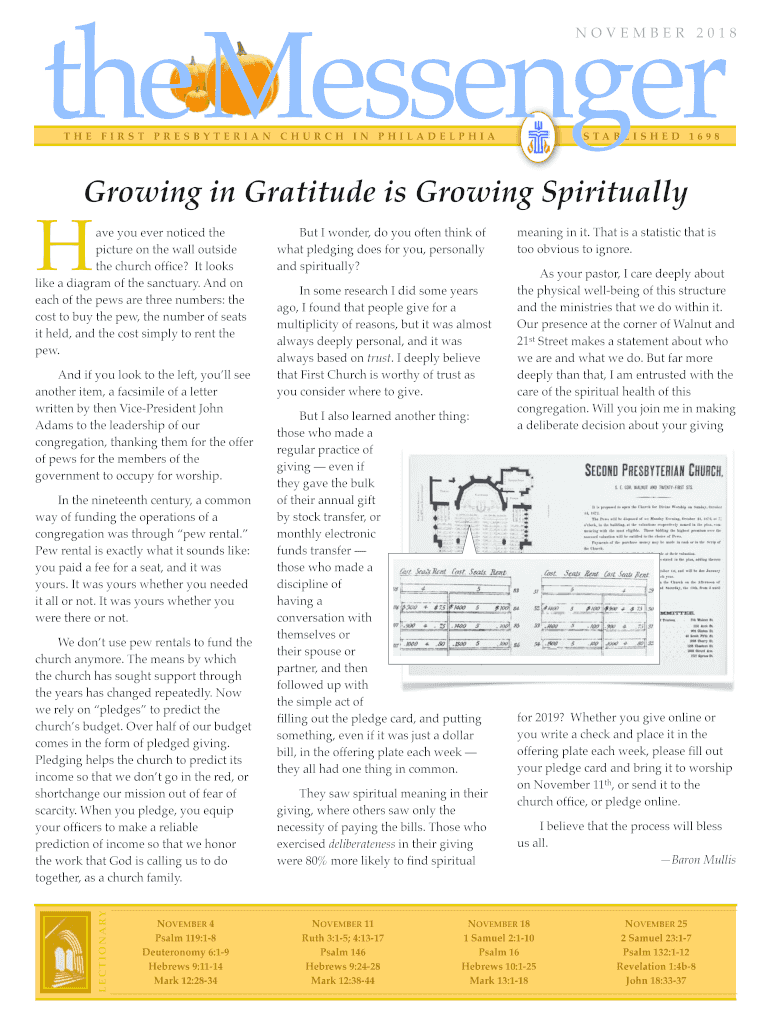 TheMessengerNOVEMBER 2018THE FIRST PRESBYTERIAN CHURCH IN PHILADELPHIA S TA B L I S H E D 1 6 9 8Growing in Gratitude is Growing SpirituallyHave you ever noticed the