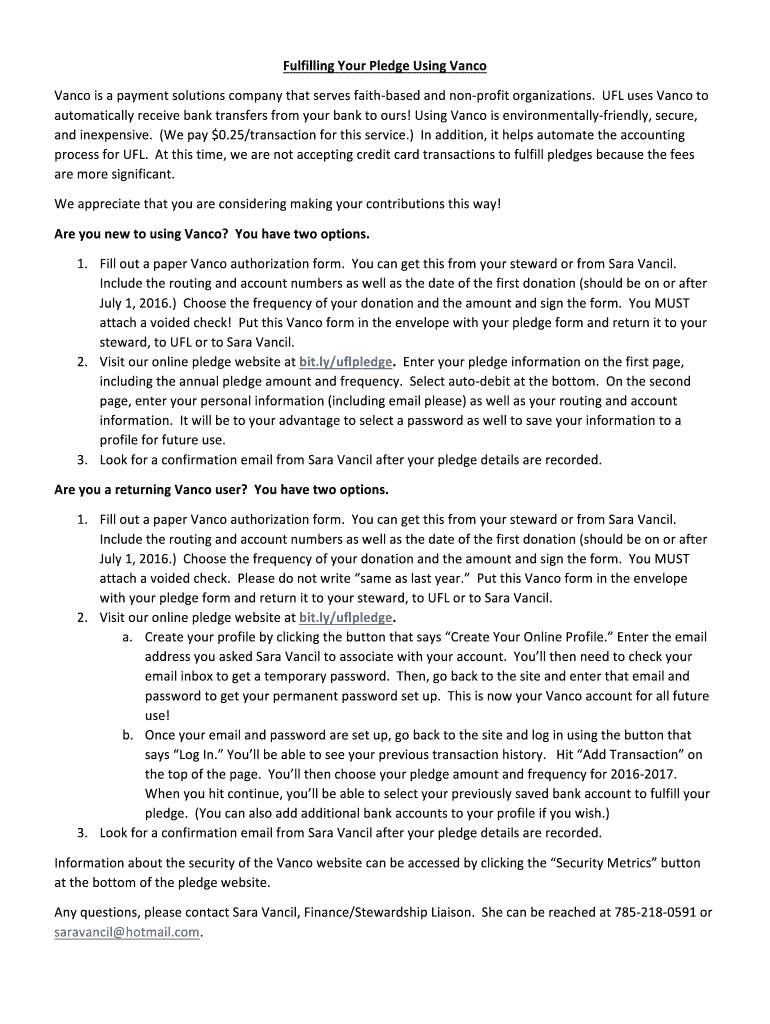 Get the free Fulfilling Your Pledge Using Vanco Vanco is a payment ...