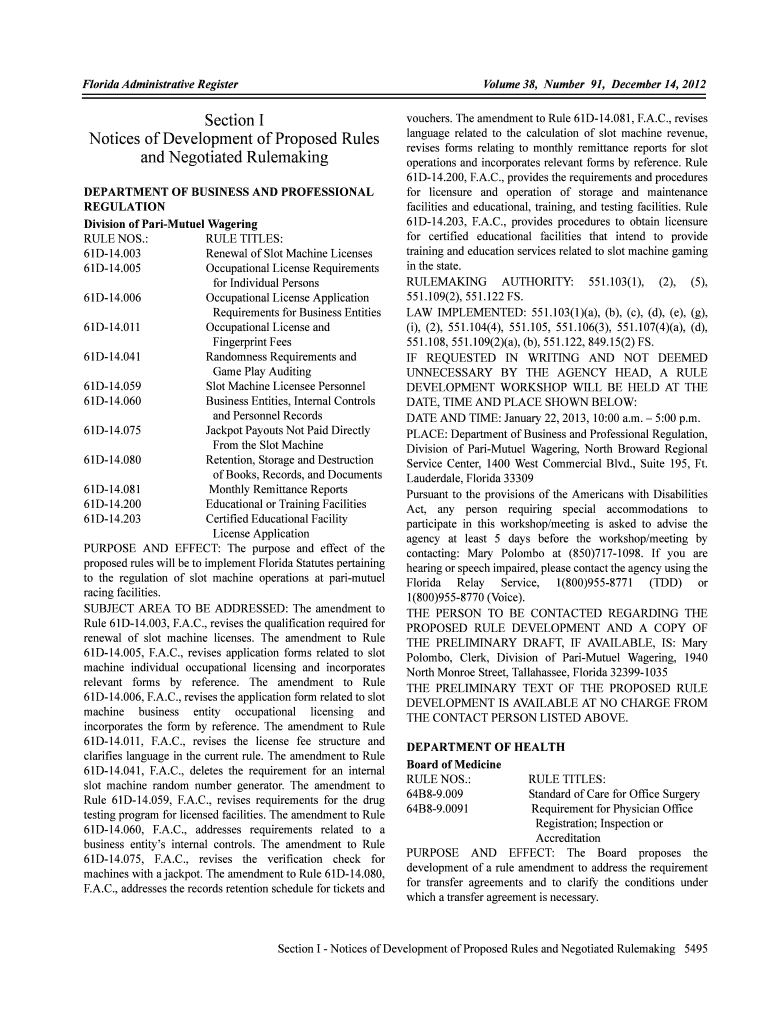 Florida Administrative RegisterVolume 38, Number 91, December 14, 2012Section I