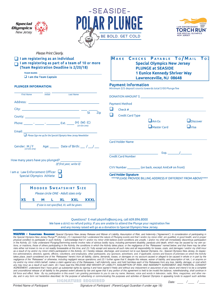 Q please Print Clearly. I am registering as an individual I am registering as part of a team of 10 or more (Team Registration Deadline is 2/20/18)Paychecks q I am the Team Captained NAME:To/MailSpecial