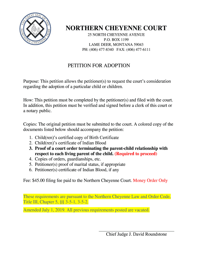 PH: (406) 4778340 FAX: (406) 4776111PETITION FOR ADOPTION