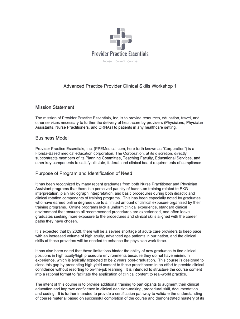 Advanced Practice Provider Clinical Skills Workshop 1Mission Statement