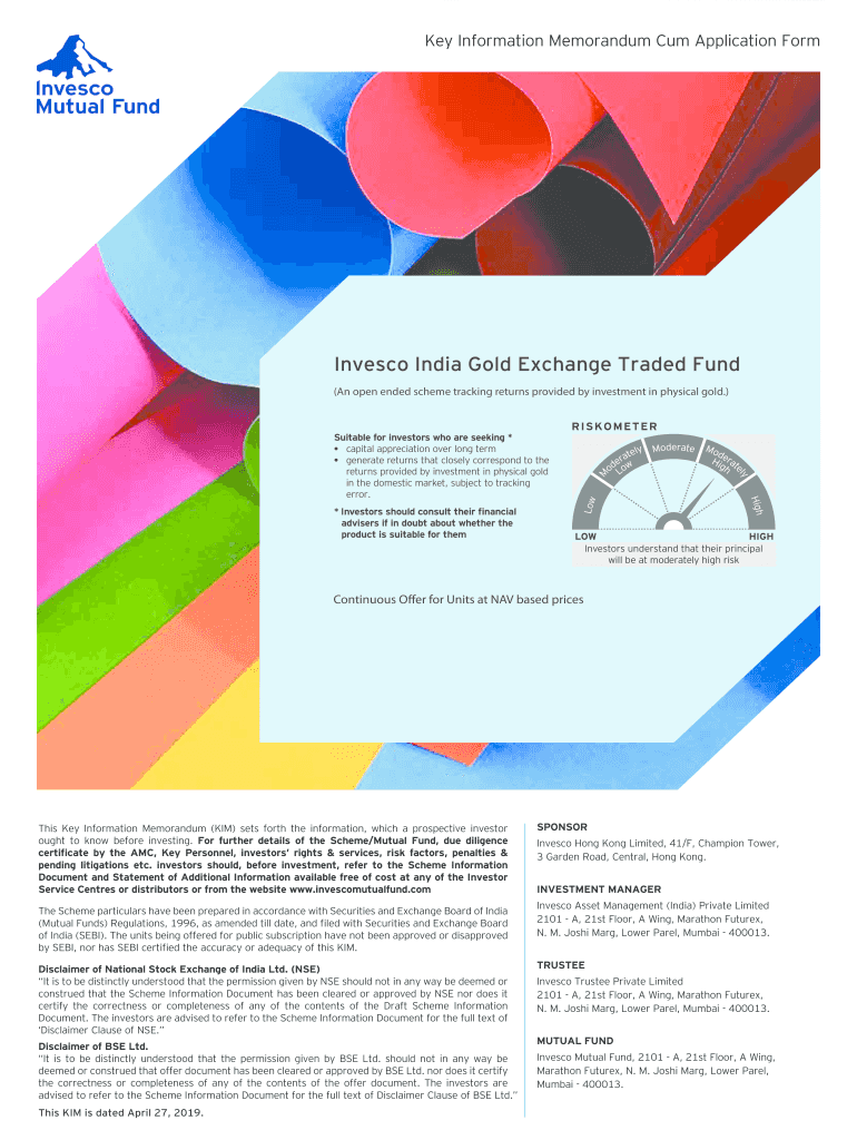 Key Information Memorandum Come Application FormInvesco India Gold Exchange Traded Fund (An open-ended scheme tracking returns provided by investment in physical gold.) Suitable for investors who
